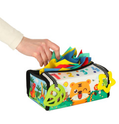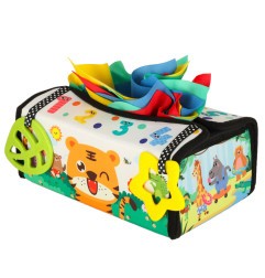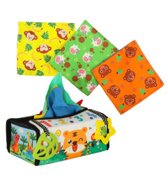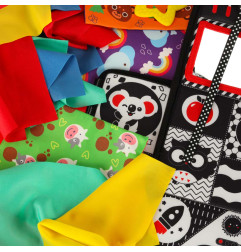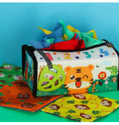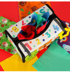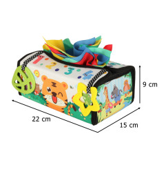 Ieškote lavinamojo žaislo, kuris suteiktų jūsų mažyliui daug džiaugsmo ir kartu palaikytų jo vystymąsi? Sensorinis rūšiuoklis dėžutės formos su spalvotomis servetėlėmis ir įvairiais audiniais yra puikus pasirinkimas! Sukurtas atsižvelgiant į pačius mažiausius vaikus, jis yra saugus, patvarus ir lengvai valomas.