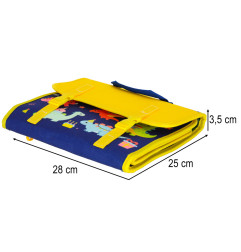 Spalvinga veltinio lenta su dinozaurais atrodo kaip klasikinis mokyklinis krepšys. Dėl ergonomiškos formos ir petnešų ją galima patogiai gabenti į mokyklą ar vaikų darželį. Naudojant lentą galima patogiai įsisavinti ir įtvirtinti žinias taikant mokymosi žaidžiant metodą.