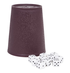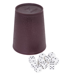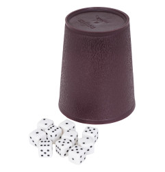 - puodelis maždaug 8,2 cm x 6,7 cm, - kauliukai maždaug 1 cm x 1 cm x 1 cm, - pakuotė apie 8,5 cm x 7,5 cm x 7 cm. |