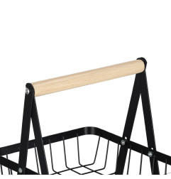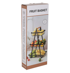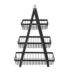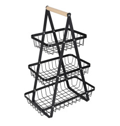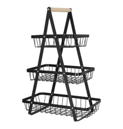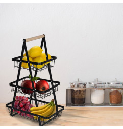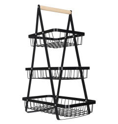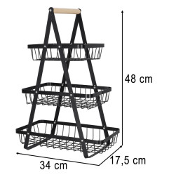 Vaisių krepšelis juodas trijų pakopų metalinis medinis