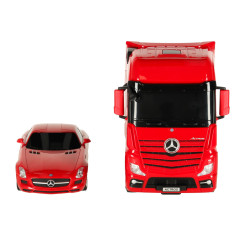 Rastar 74920 "Mercedes-Benz" nuotolinio valdymo rinkinys yra unikalus pasiūlymas jauniesiems automobilių entuziastams! Rinkinį sudaro du modeliai - įspūdingassunkvežimis "Mercedes-Benz Actros" ir sportiškas "Mercedes-Benz SLS AMG ".