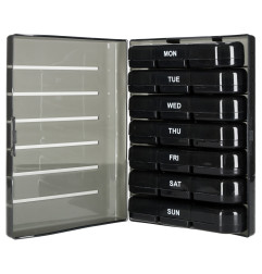 Pasirūpinkite, kad būtumėte sveiki,tvarkingi ir taisyklingi! Vaistų organizatorius yra praktiškas ir stilingas savaitinis vaistų konteineris, kuriame galėsite itin lengvai planuoti vaistų dozę kiekvieną savaitės dieną ir vartoti kasdieniusmaisto papildus. Jis idealiai tinka pagyvenusiems žmonėms, aktyviems žmonėms ir visiems, kurie norivisada kontroliuoti savovaistus, kapsules ir tabletes.