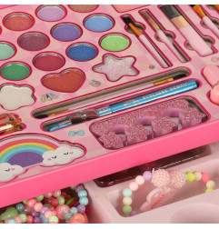 Dovanodami dukrai tokią dovaną, palaikote jos rankų vystymąsi, mokote jąestetikos ir tvarkos bei leidžiate išreikšti save. Vaikiškos kosmetikos rinkinys lavinavaizduotę, o dėl plataus turinio - nuošešėlių ir blizgių iki nagų lako lagaminėlio - leidžia jai eksperimentuoti, mokytis ir kurti.