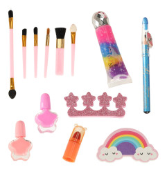 Kosmetikos skrynelėje yra tik saugios makiažo priemonės vaikams, pritaikytos jų jautriai odai - lengvos, lengvai plaunamos ir hipoalerginės. Tai ne tikmakiažo kosmetikavaikams , bet ir visas makiažo reikmenų rinkinys bei nagų modeliavimo rinkinys viename. Naudodamas į rinkinį įtrauktus teptukus, šešėlius,lakus, lagaminėlį suveidrodėliu ir spalvingusaksesuarus, vaikas galikūrybiškai ir saugiai išreikšti save ir kartu smagiai praleisti laiką.