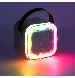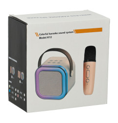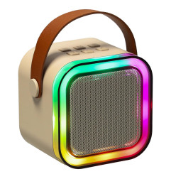 KARAOKĖ RINKINYS MIKROFONAS + NEŠIOJAMASIS GARSIAKALBIS BLUETOOTH USB LED BEIGE