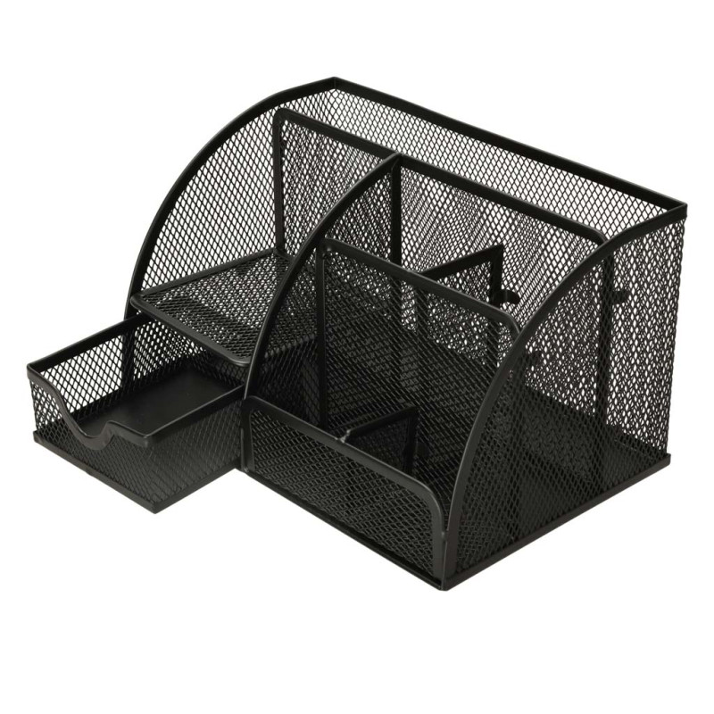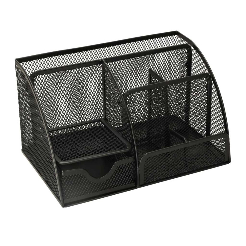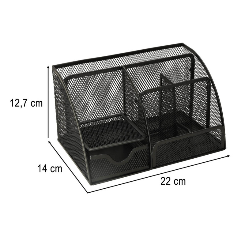 Minimalistinis dizainas - dėl juodos spalvos metalinio tinklelio organizatorius tinka ir studento kambariui, ir biurui