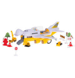 TRANSPORTERIO LĖKTUVAS SU STATYBINĖMIS TRANSPORTO PRIEMONĖMIS ŠONE IR PRIEKYJE
