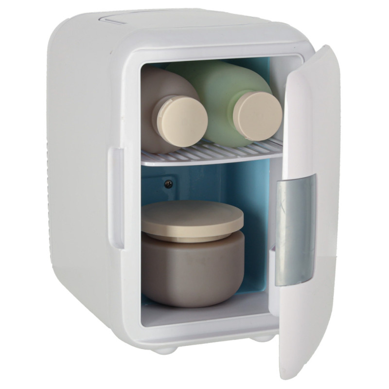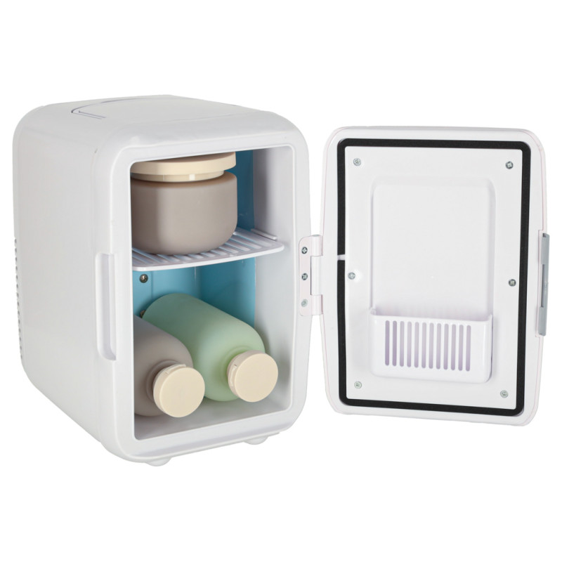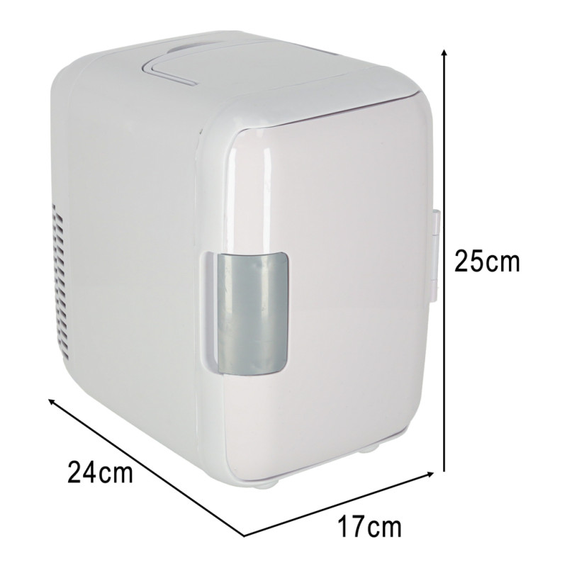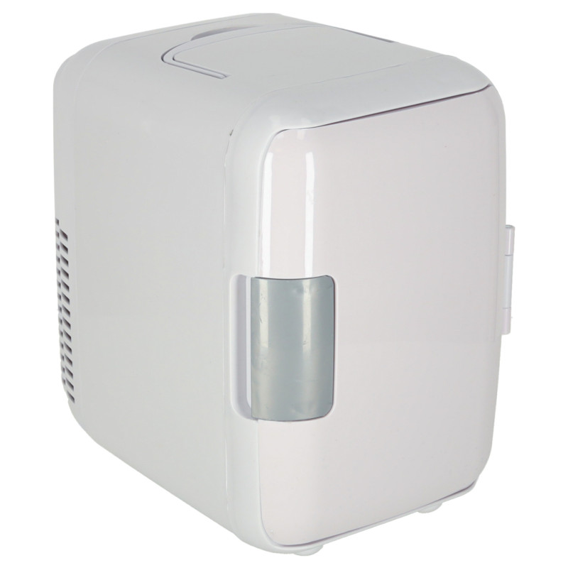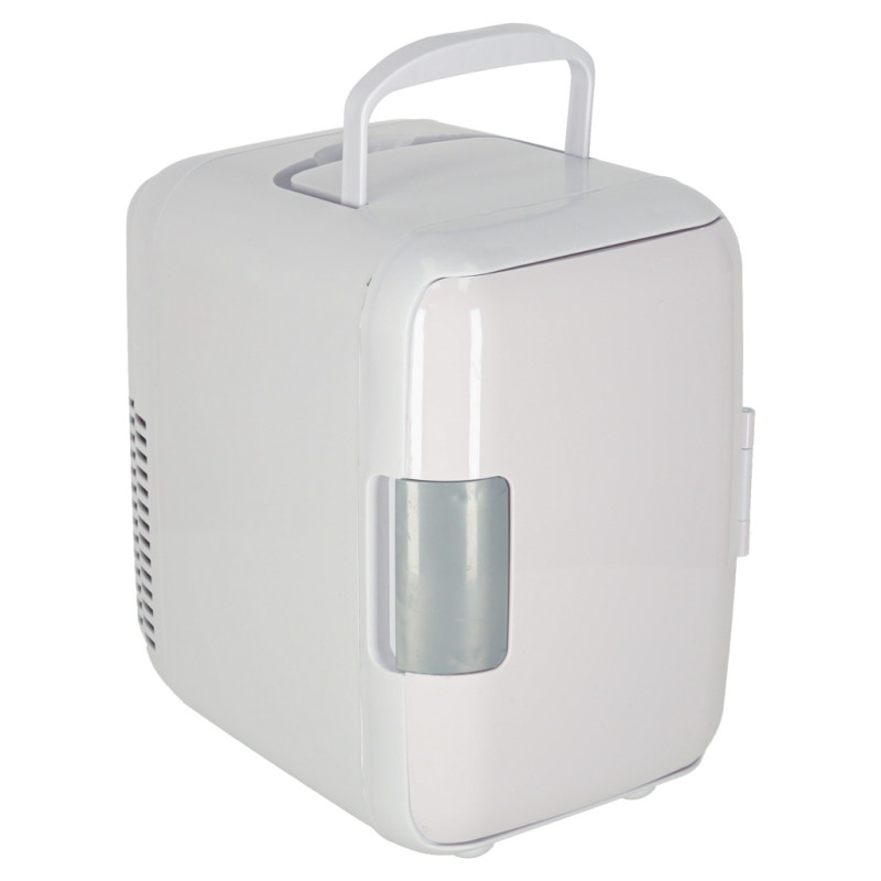 Ergonomiškos konstrukcijos baltas kelioninis šaldytuvas palaiko tiek atvėsintų, tiek šildomų produktų temperatūrą. Jį galima prijungti prie įprasto elektros lizdo ir prie cigarečių žiebtuvėlio lizdo.