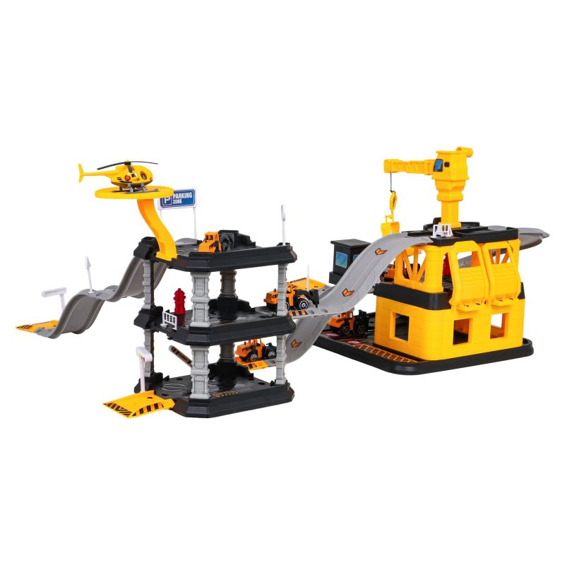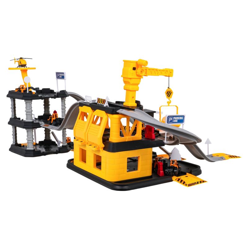 Didelė, daugiaaukštė automobilių stovėjimo aikštelė su statybviete ir statybų transporto priemonėmis, skirta vaikams nuo trejų metų amžiaus. Rinkinį sudaro 84 dalys, skirtos savarankiškam surinkimui. Kiekviena detalė pagaminta itin kruopščiai iš aukščiausios kokybės, vaikams saugių medžiagų. Surinktas rinkinys susideda iš dviejų dalių, sujungtų čiuožykla. Pirmoji dalis – trijų aukštų aikštelė statybų technikai su sraigtasparnių nusileidimo aikštele. Antroji dalis – trijų aukštų statybvietė su judančiu kranu, degaline ir daugybe nusileidimo takų transporto priemonėms. Rinkinyje taip pat yra šešios statybų mašinos ir sraigtasparnis. Tai puikus rinkinys ilgoms žaidimų valandoms, leidžiantis mažyliui įsikūnyti į statybų vadovo vaidmenį.