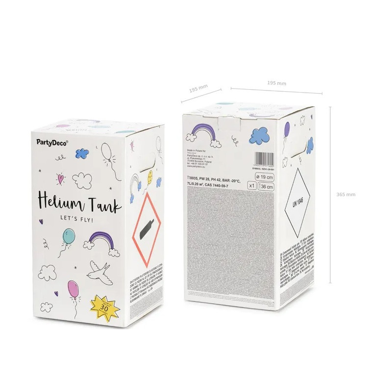 Balionėliu galima pripildyti apie 30 9 colių balionų arba apie 14 14 colių balionų.