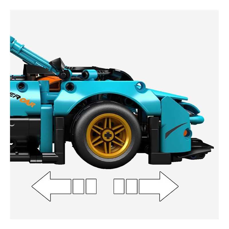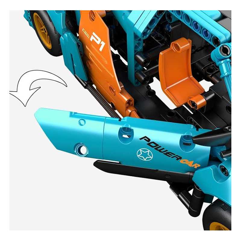 Konstruktoriaus kaladėlių rinkinys, iš kurių galima surinkti 1:14 mastelio sportinės transporto priemonės modelį, skirtas vaikams nuo 8 metų. Rinkinį sudaro 936 elementai, pagaminti iš geriausios kokybės medžiagų. Sudėta transporto priemonė juda visomis kryptimis: pirmyn, atgal, į dešinę ir į kairę. Ji turi gumines padangas, kurios užtikrina gerą sukibimą su žeme, taip pat atidaromas duris. Automobilį maitina 7, 4 V akumuliatorius (įeina į rinkinį), o nuotolinio valdymo pultelį - 2 x AAA 1, 5 V baterijos (į rinkinį neįeina). Automobilį galima valdyti rinkinyje esančiu nuotolinio valdymo pulteliu arba telefonu parsisiuntus programėlę. Programos atsisiuntimo kodas yra ant pakuotės. Programėlė palaiko "Apple" 9.0 arba naujesnę versiją ir "Android 5.0" arba naujesnę versiją. Specifikacijos: