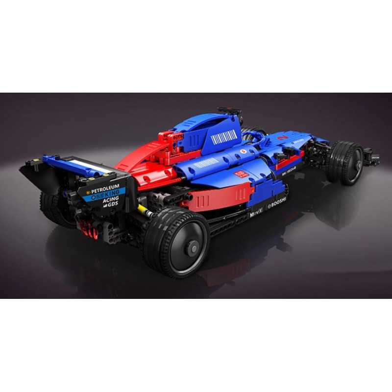 Aukštos kokybės statybinės kaladėlės vaikams nuo 14 metų. Rinkinį sudaro 1065 elementai, iš kurių galima sukonstruoti nuotoliniu būdu valdomą F1 lenktyninį automobilį. Automobilis juda visomis kryptimis pirmyn, atgal, į dešinę ir į kairę. Jį galite valdyti naudodami rinkinyje esantį nuotolinio valdymo pultelį arba naudodami programėlę telefone. Programėlę galima atsisiųsti nuskaičius ant pakuotės esantį QR kodą. Naudodamiesi programėle galite ne tik judinti transporto priemonę, bet ir projektuoti jos judesius. Transporto priemonė turi gumines padangas, kurios užtikrina gerą sukibimą su žeme. Automobilį maitina 7, 4 V baterija (įeina į rinkinį), nuotolinio valdymo pultelį maitina 2 x AAA 1, 5 V baterijos (į rinkinį neįeina). Specifikacija: