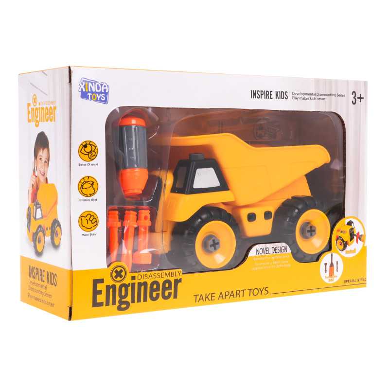 Rinkinys konstruktorius savivartis, tinkamas mažiesiems nuo 3 metų amžiaus. Jūsų vaikas gali išardyti transporto priemonę ir vėl ją surinkti. Rinkinyje yra atsuktuvas su keičiamais lizdais. Savivartis turi pakeltą ir nuleistą savivartį.