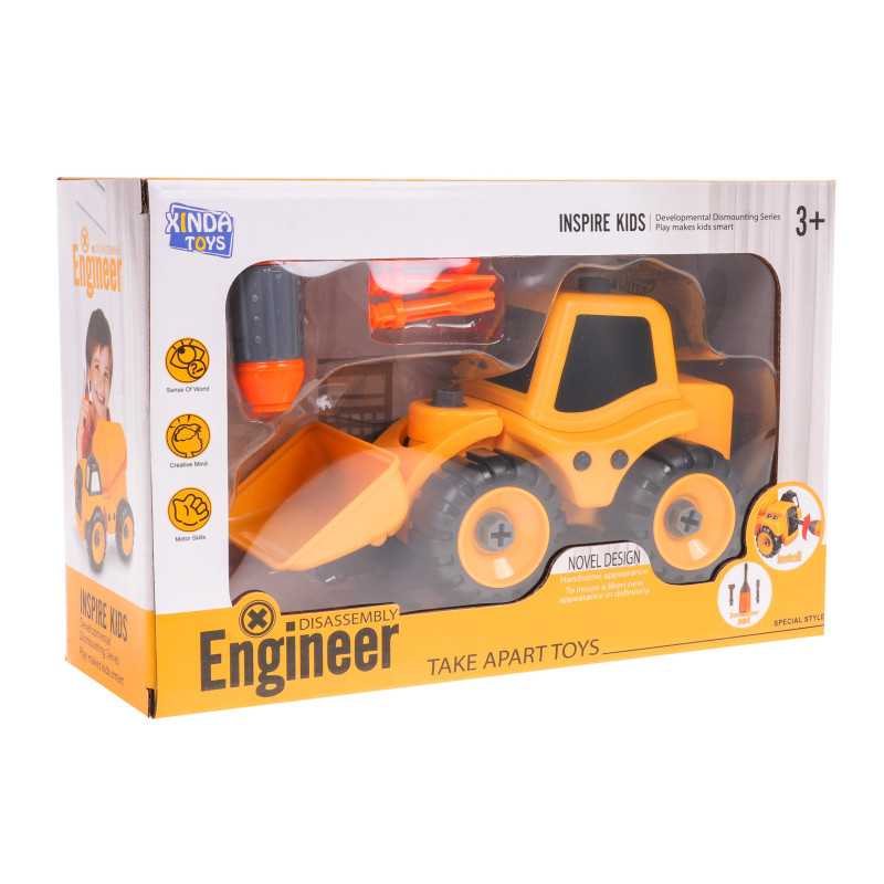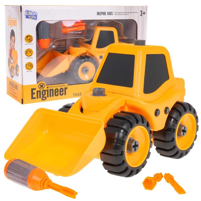 Rinkinys konstruktorius buldozeris, tinkamas mažiesiems nuo 3 metų amžiaus. Jūsų vaikas gali išardyti transporto priemonę ir vėl ją surinkti. Transporto priemonė pagaminta iš geriausios kokybės plastiko, ją galima prisukti ir išardyti bet kiek kartų, nebijant sugadinti elementų. Rinkinyje yra atsuktuvas su keičiamais antgaliais. Buldozeris turi judantį kaušą. |