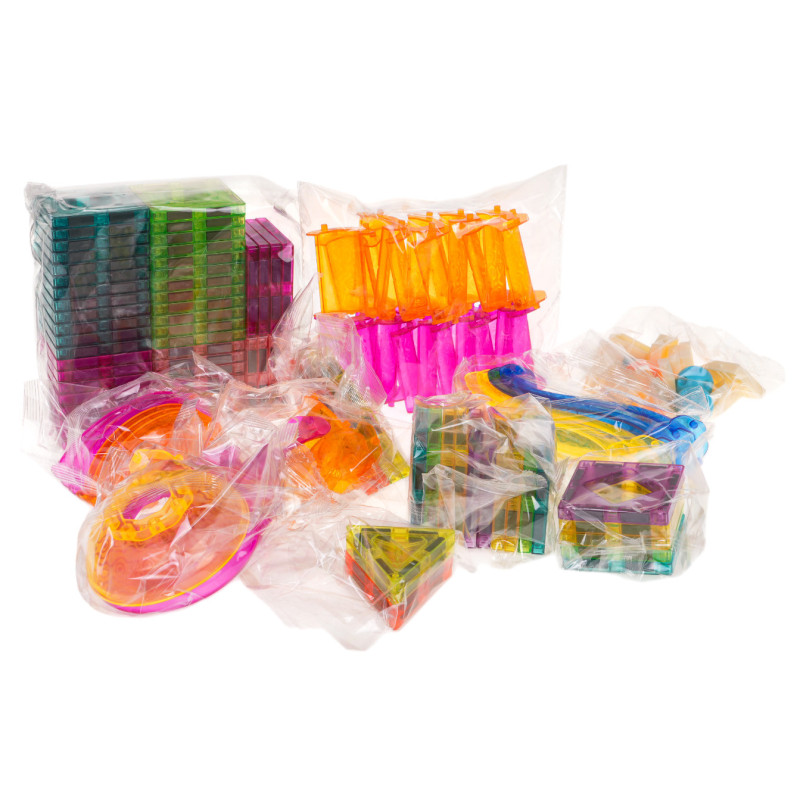 - 226 konstrukciniai elementai, įskaitant 106 magnetinius elementus, - 10 kamuoliukų, - dekoratyviniai lipdukai, - vaizdinės įvairių modelių surinkimo instrukcijos, - dėžutė su formų rūšiuokliu ir rankenomis, kuri taip pat naudojama kaip pakuotė. |