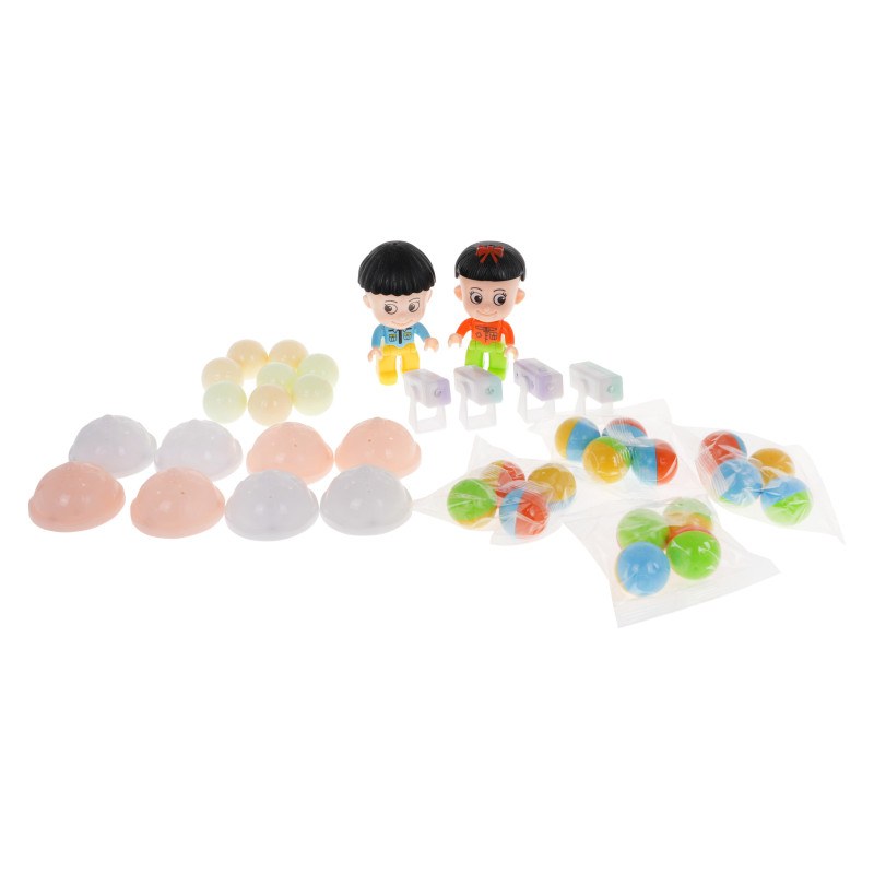 - konstrukciniai elementai, įskaitant 92 magnetinius elementus, - 16 spalvotų kamuoliukų, - berniuko ir mergaitės figūrėlė su judančiais elementais, - 8 rutuliukai, pulsuojantys švieselėmis, - 8 šviečiančios ir spalvas keičiančios kapsulės, - 4 pulsuojantys 3 režimų diskai, - 4 LED žibintai, - 60 x dekoratyvinių lipdukų, - vaizdinės įvairių modelių surinkimo instrukcijos. |