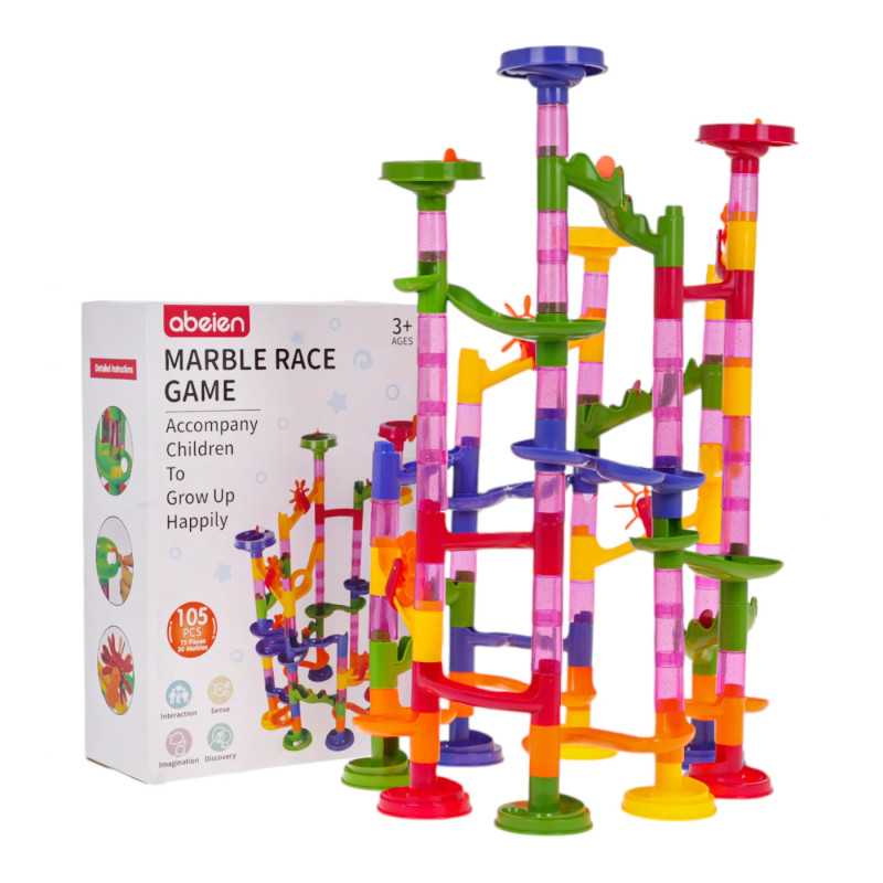 Spalvinga, patvari kamuoliukų trasa skirta vaikams nuo 3 metų amžiaus, tačiau tikrai sudomins ir vyresnius vaikus. Žaidimo esmė – pačiam susikonstruoti trasos struktūrą, o vėliau paleisti kamuoliukus tuneliais. Galima sekti rinkinyje esančias vaizdines instrukcijas arba sukurti savo bokštą. Paleidus kamuoliukus ir stebint, kaip jie įveikia vingiuotus tunelius, patiriama daug džiaugsmo, tai ramina ir atpalaiduoja. Žaislas teigiamai veikia kūrybiškumo, vaizduotės ir rankų darbo įgūdžių vystymąsi.