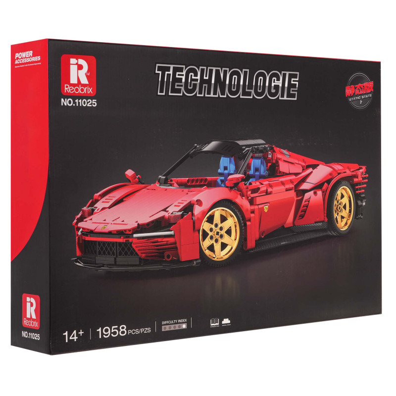 Rinkinys iš 1958 konstravimo kaladėlių, skirtas savarankiškai surinkti raudoną sportinį automobilį. Žaislas skirtas vaikams nuo 14 metų amžiaus. Kaladėlės ir automobilio elementai pagaminti iš aukštos kokybės plastiko.