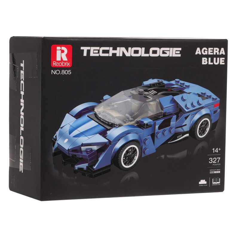 Rinkinys iš 327 konstravimo kaladėlių, skirtas savarankiškai surinkti Agera Blue sportinį automobilį. Žaislas skirtas vaikams nuo 14 metų amžiaus, o jo sudėtingumo lygis yra 2/5. Automobilis turi rankiniu būdu atidaromą galinę bagažinę. Rinkinyje yra vaizdinė instrukcija. Konstravimo kaladėlių dėliojimas lavina vaikų rankų darbo įgūdžius, erdvinę vaizduotę ir kantrybę.