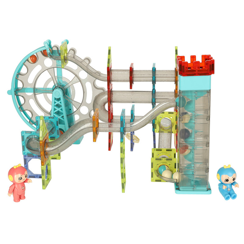 Be to, kad trasa būtų unikali, rinkinyje bus du elektriniai statiniai - Velnio ratas ir keltuvas. Jais rutuliukai galės sklandžiai judėti visoje trasoje. Be to, velnio ratas groja linksmą melodiją, kad žaisti būtų dar smagiau!