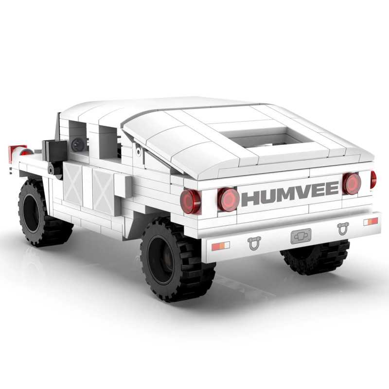 | Aukštos kokybės statybinės kaladėlės vaikams nuo 8 metų. Rinkinį sudaro 328 elementai, iš kurių galima sukurti 1:24 mastelio amerikiečių armijos automobilį Humvee. Transporto priemonė turi gumines padangas ir atidaromą bagažinę. Specifikacija: