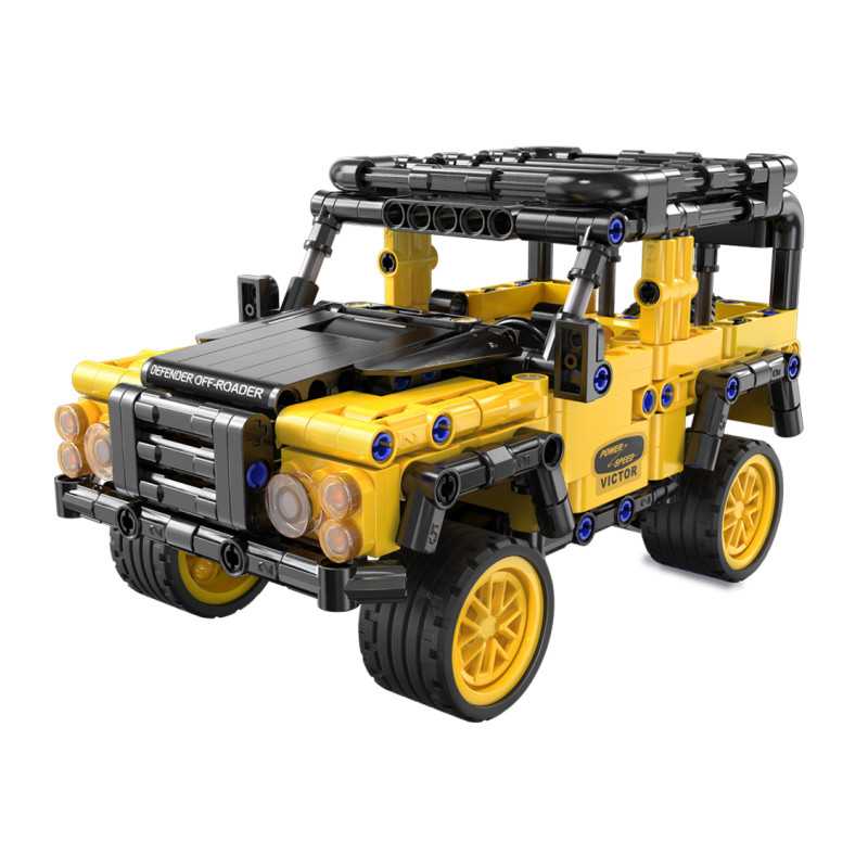 Aukštos kokybės statybinės kaladėlės vaikams nuo 6 metų. Rinkinį sudaro 389 elementai, iš kurių galima sukonstruoti Defender visureigį. Transporto priemonė turi gumines padangas, atidaromas dureles ir kapotą, taip pat traukiamą pavarą, nereikia naudoti baterijų.