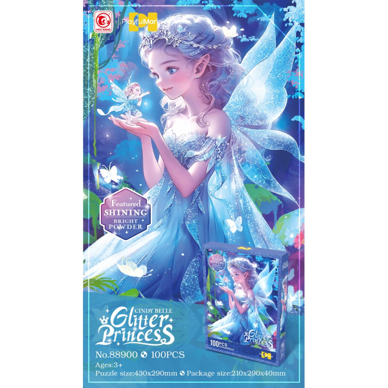 Ši 100 dalių mėlynos princesės tema sukurta dėlionė skirta vaikams nuo 3 metų amžiaus. Surinkus, sukuriama paveikslėlis su blizgučiais, kurio matmenys yra 43 cm x 29 cm. Dėliojimas moko susikaupti ir sutelkti dėmesį į vieną dalyką. Tai padeda sumažinti stresą ir pamiršti rūpesčius. Dėlionės moko loginio mąstymo, formų derinimo ir teigiamai veikia mūsų vizualinę atmintį.