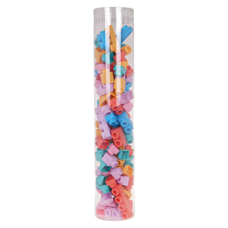 - 100 vienetų kaladėlių, - dekoratyviniai lipdukai, - vamzdelis kaladėlėms. |