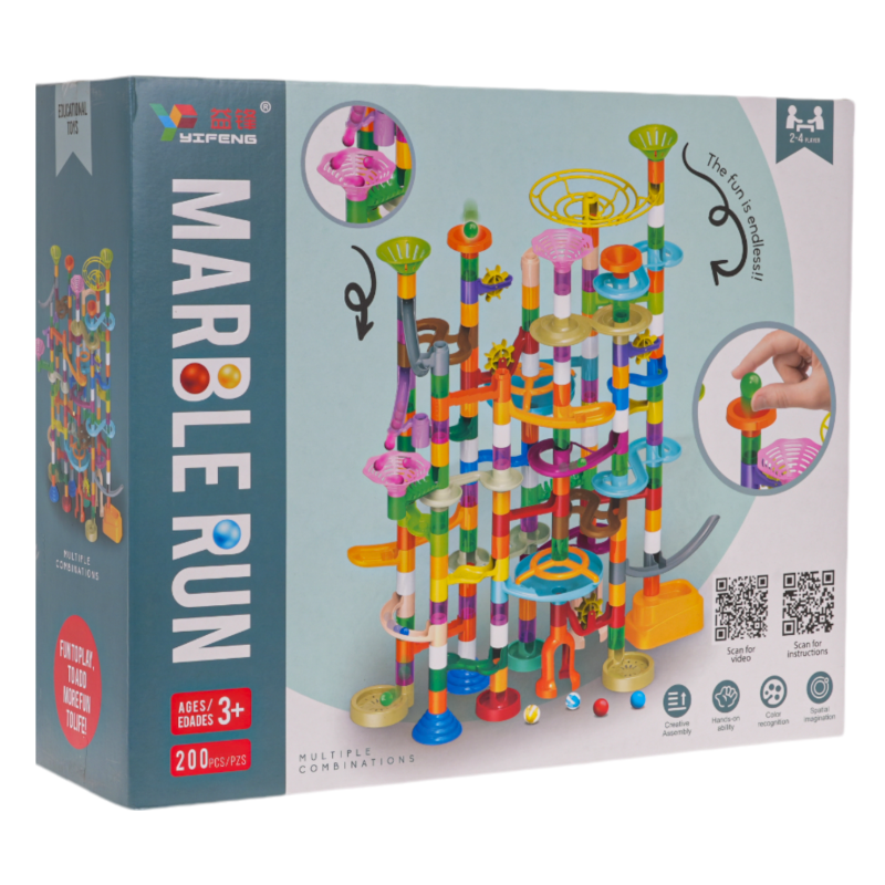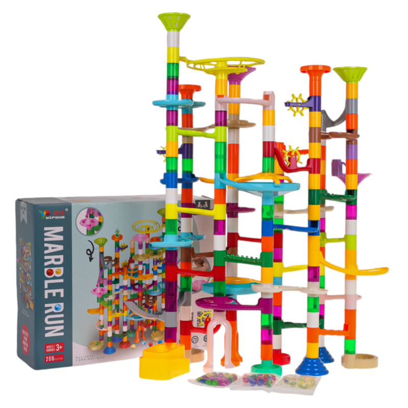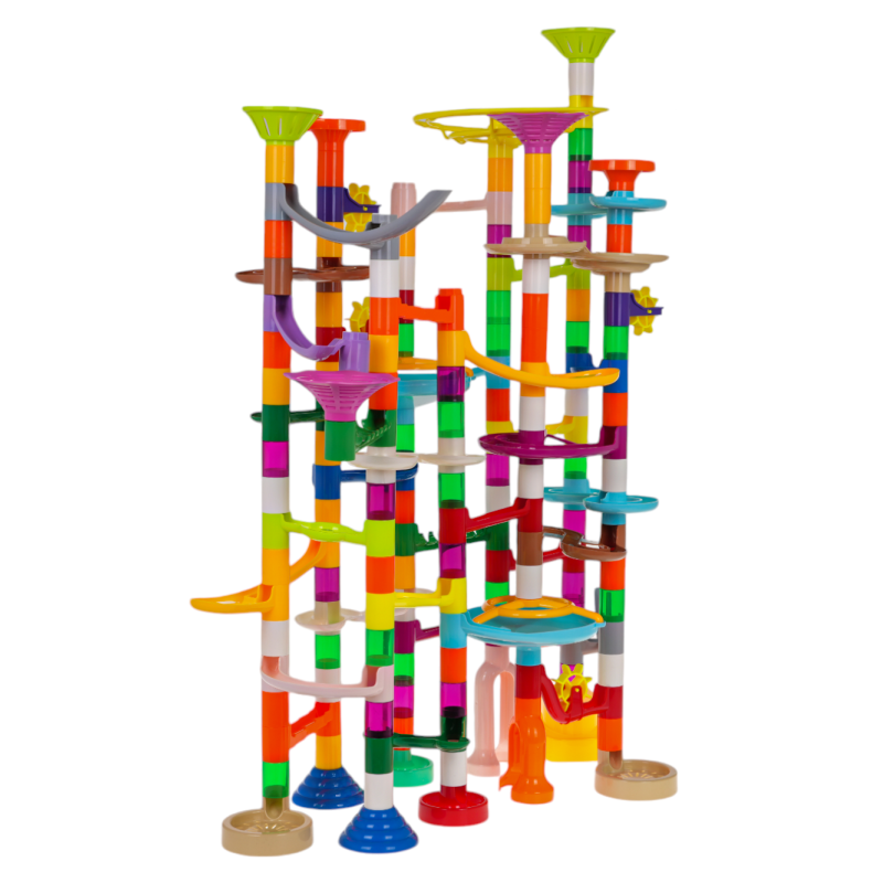 Didelė, spalvinga, patvari, puikiai pagaminta trasa su kamuoliukais siūloma vaikams nuo 3 metų, tačiau ji tikrai sudomins ir vyresnius vaikus. Žaidimą sudaro tai, kad reikia patiems pastatyti trasos konstrukciją, o tada paleisti kamuoliukus per tunelius. Galite vadovautis rinkinyje esančiomis vaizdinėmis instrukcijomis arba patys susikurti bokštą. Judančių kamuoliukų paleidimas ir stebėjimas, kaip jie įveikia vingiuotus tunelius, suteikia daug džiaugsmo, ramina ir nuramina. Žaislas teigiamai veikia kūrybiškumo, vaizduotės ir rankų darbo įgūdžių ugdymą.