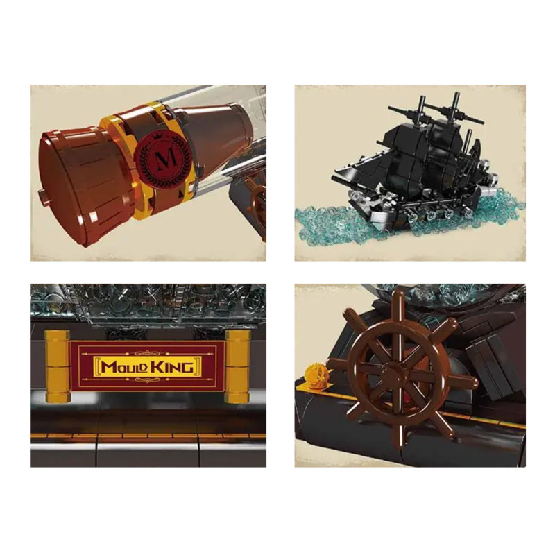 Aukštos kokybės "Mold King" statybinės kaladėlės vaikams nuo aštuonerių metų. Šį rinkinį sudaro 792 detalės, iš kurių galima pastatyti piratų laivą butelyje. Šis stulbinantis modelis tikrai patrauks dėmesį savo detaliu dizainu.