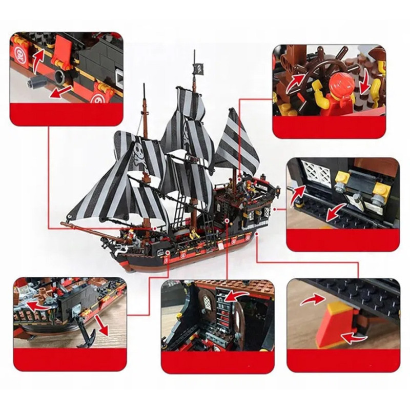 Aukštos kokybės statybinės kaladėlės vaikams nuo šešerių metų. Šį rinkinį sudaro 968 detalės, iš kurių galima pastatyti juodąjį piratų laivą. Šis stulbinantis modelis tikrai patrauks dėmesį savo detaliu dizainu.