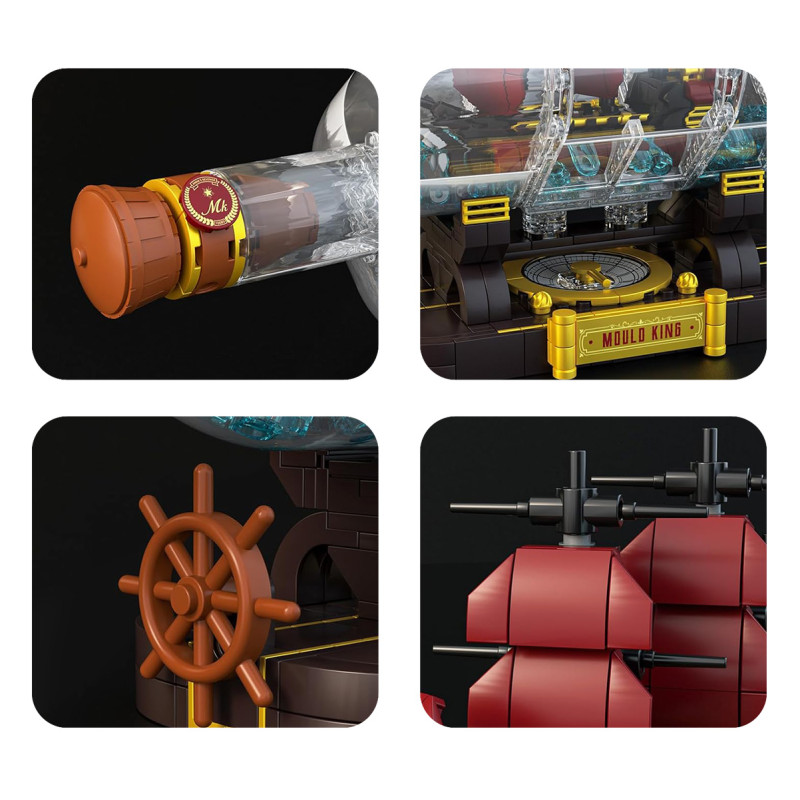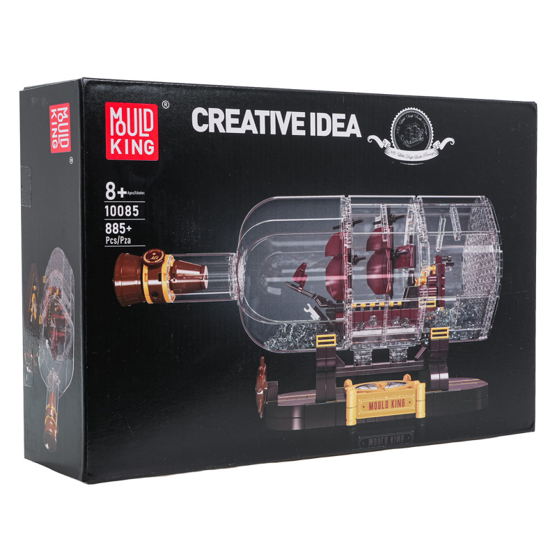 Aukštos kokybės "Mold King" statybinės kaladėlės vaikams nuo aštuonerių metų. Šį rinkinį sudaro 885 detalės, iš kurių galima pastatyti piratų laivą butelyje. Šis stulbinantis modelis tikrai patrauks dėmesį savo detaliu dizainu.