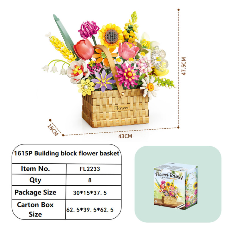 Aukštos kokybės statybinės kaladėlės vaikams nuo aštuonerių metų. Šį rinkinį sudaro 1615 detalių, iš kurių galima sukonstruoti pavasarinę gėlių puokštę krepšyje. Ši puiki gėlių kompozicija tikrai patrauks dėmesį savo detaliu dizainu. Tai idealus dovanų rinkinys įvairioms progoms.
