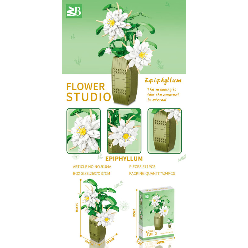 Aukštos kokybės statybinės kaladėlės vaikams nuo šešerių metų. Šį gėlių serijos rinkinį sudaro 571 detalė, iš kurių galima statyti baltas gėles vazone. Šis stulbinantis modelis tikrai patrauks dėmesį savo detaliu dizainu.