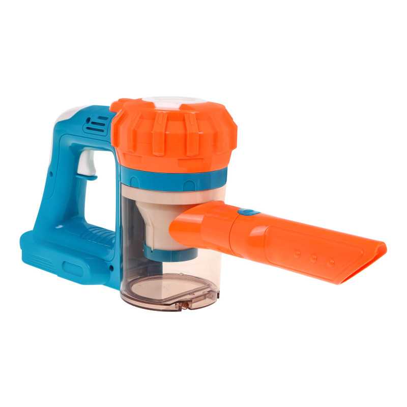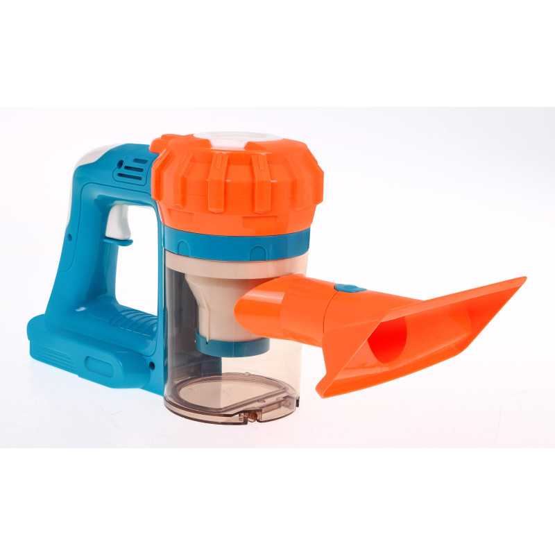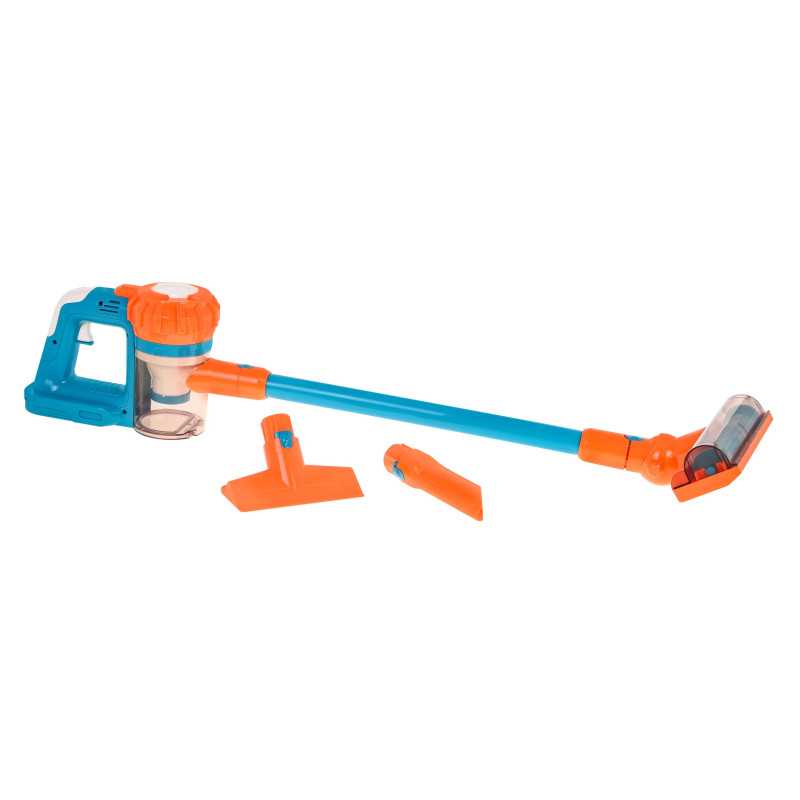 | Dulkių siurblys "3-in-1" su garso efektais skirtas vyresniems nei 3 metų vaikams. Jis moko vaiką palaikyti tvarką savo kambaryje. Šis žaislas yra itin sėkminga tikro stacionaraus dulkių siurblio kopija. Jį lengvai ir greitai galime paversti mažu rankiniu dulkių siurbliu. Prietaisas skleidžia siurbimo garsus ir įsiurbia smulkius daiktus, pavyzdžiui, popieriaus skiautes, polistireno kamuoliukus ir t. t., kurie, įsiurbti į talpyklą, papildomai sukasi. Žaislą maitina 5 x AA 1, 5 V baterijos (į komplektą neįeina). | |