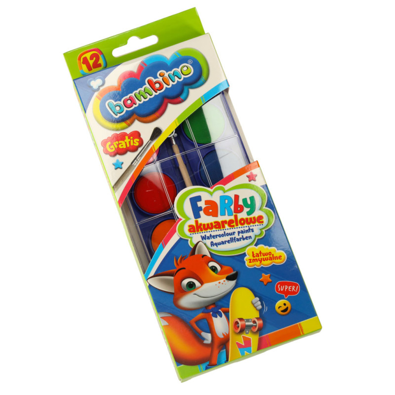 - "Bambino" akvareliniai dažai, 12 spalvų,