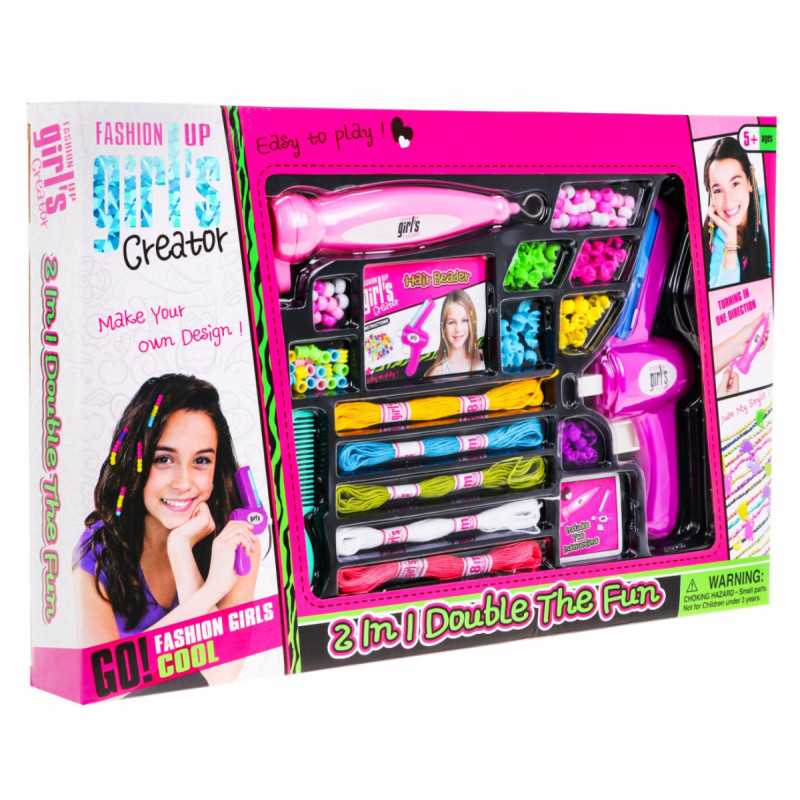 Prisijunkite prie smagaus kūrybiško gyvenimo būdo su mūsų nuostabiu "2 in 1" rinkiniu karoliukams ant plaukų klijuoti ir apyrankėms gaminti iš žaislų serijos "Pasidaryk pats", kuris jūsų vaiką įtrauks į šiek tiek kitokią, kūrybiškesnę žaidimo dimensiją. Įvairių elementų dėka jūsų vaikas kiekvieną dieną gali panaudoti vis kitą originalią plaukų puošybos ar papuošalų idėją. Turime 101 puošybos elementą. Jūsų vaikas nuspręs, kaip atrodys kiekvienas norimas papuošalas. Jis taip pat nuspręs, kokios spalvos ir tipo aksesuarais papuošti lėlės plaukus ar savo. Platus virvelių ir tradicinių karoliukų pasirinkimas leis sukurti tradicines pintas apyrankes, puoštas karoliukais. Turime daugybę idėjų ir kompozicijų, iš kurių galima rinktis. Kiekvienas žaidimo dalyvis turi nepakartojamą galimybę sukurti viską nuo nulio. Pasitelkite vaizduotę, leiskite sau pasiduoti ir efektai jus nustebins!