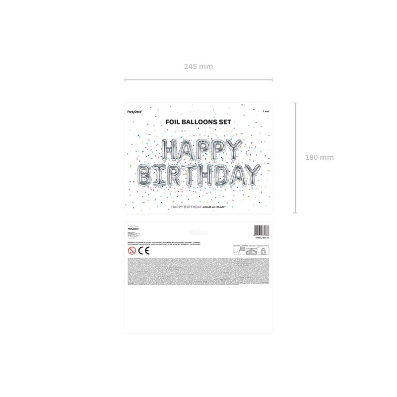 Sidabrinės spalvos metalizuotos folijos balionas "Happy Birthday".
