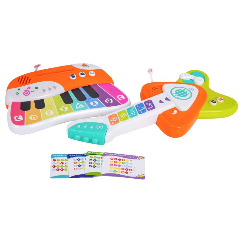 Pirmasis liečiamų (sensorinių) muzikos instrumentų rinkinys, skirtas vaikams nuo aštuoniolikos mėnesių amžiaus. Rinkinį sudaro gitara, klavišinis instrumentas ir natų kortelės. Šie žaisliniai instrumentai pagaminti iš aukščiausios kokybės, vaikams saugaus plastiko. Ryškios spalvos patraukia vaikų dėmesį ir skatina žaisti. Grojimas šiais instrumentais lavina muzikinį pojūtį bei klausą, moko skirti garsus. Gitara maitinama 3 x AAA 1,5V baterijomis (nepridedamos), o klavišinis instrumentas – taip pat 3 x AAA 1,5V baterijomis (nepridedamos).