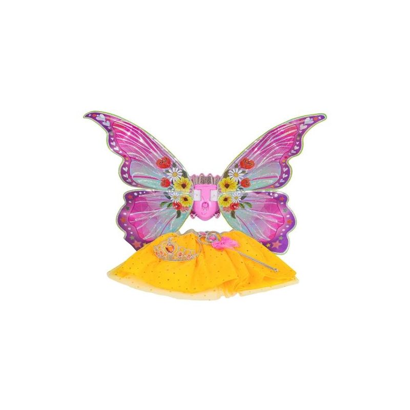 Šis nuostabus rinkinys, skirtas vaikams nuo trejų metų amžiaus, apima drugelio sparnus, sijoną, karūną ir burtų lazdelę. Rinkinys pagamintas itin kruopščiai, atkreipiant dėmesį į detales, ir pavergia savo sodriomis spalvomis. Su šiuo kostiumu jūsų mažylis jausis ypatingai ir lyg iš pasakos. Jis puikiai tinka baliui, pasirodymui ar kasdieniam žaidimui. Sparnai maitinami 4 x AA 1,5V baterijomis (nepridedamos).