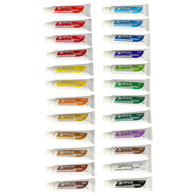 Meniniai akriliniai dažai įvairiaspalviai 24 tūbelės