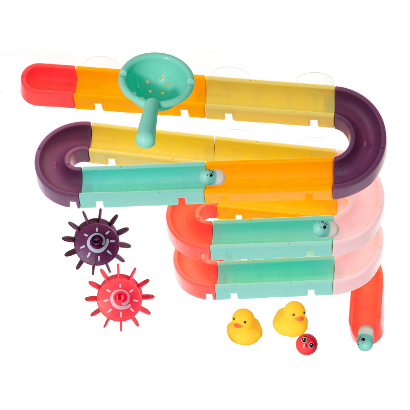 Pasakiškai spalvingas kliūčių ruožas pupelėms ir kamuoliukams bus neatsiejama kiekvienos vonios dalis.