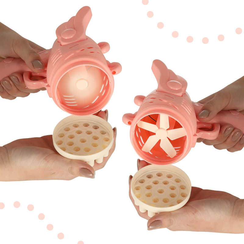 Burbulų mašinos valdymas bus puiki rankų darbo įgūdžių treniruotė - tiksliai panardinti gaminį į skystį ir tinkamai nusitaikyti reikės šiek tiek įgūdžių ir tikslumo. Tačiau jūsų mažyliui tai tikrai pavyks!