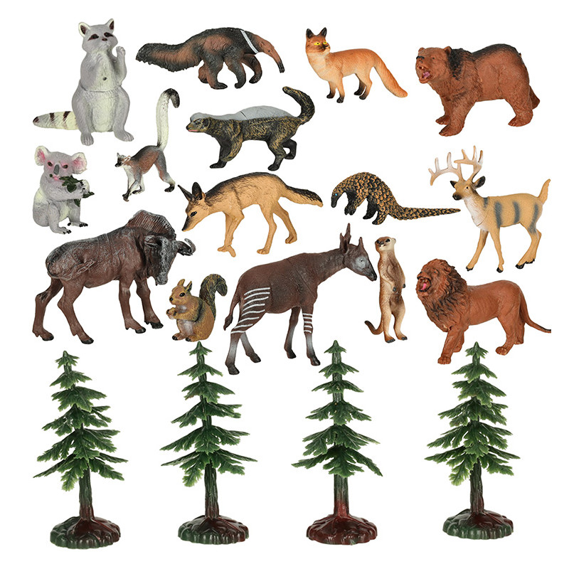 Kiekviena figūrėlė pagaminta kruopščiai, kad kuo geriau atkartotų tikrą gyvūną. Rinkinyje rasite gyvūnų iš savanos, džiunglių ir miško. Nuo didingo liūto iki žavingos koalos - jūsų vaikas tikrai ras savo mėgstamiausią gyvūną. Rinkinyje papildomai yra 4 eglutės, kad būtų sukurta unikali miško aplinka.