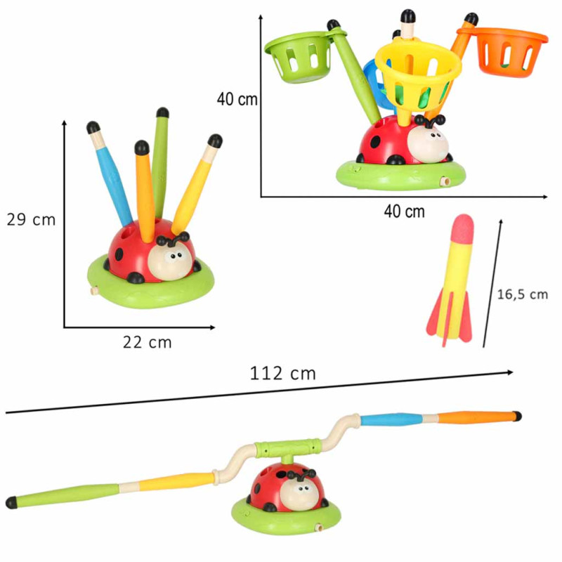 Ši daugiafunkcinė boružėlė 4-in-1 nėra paprastas žaislas - tai interaktyvus žaislas, kuris sukasi,šviečia, mėto raketas ir skatina vaikus šokinėti, bėgioti irjudėti nuo pat pirmos sekundės! Tai arkadinio žaidimo, interaktyvios šokinėjančios pilies,raketų paleidimo įrenginio ir taikinio mėtymo derinys, kuris taip įtraukia vaikus, kad sunku išsirinkti mėgstamiausią funkciją. Pasiimkite jį į sodą ar žaidimų aikštelę ir bet kur jis taps aktyvia, juoko ir judesio kupina žaidimų zona.