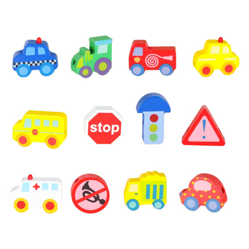 - 12x medinių kaladėlių transporto priemonės
