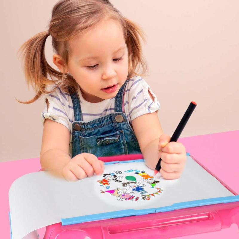 Šis piešimo stalo rinkinys - tikras kūrybiškumo centras! Dėl žavingo mokomojo projektoriaus ir jo švelnios šviesos vaiko mokymąsi piešti lydi magija ir džiaugsmas. Piešimas lavina rankų darbo įgūdžius, skatina vaikų kūrybiškumą ir žadina meninį smalsumą.