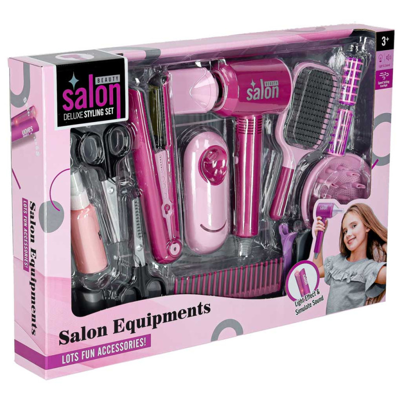 Vaikų plaukų džiovintuvas skleidžia tikroviškus garsus, imituojančius oro ūžesį, o tiesintuvas su imituojamu kaitinimu šviečia ir skleidžia garsus, kol veikia. Dėl tokių garso efektų žaidimas tampa itin tikroviškas, įtraukiantis ir kartusaugus. Tai puikus būdas į vaiko kambarį perkelti tikros kirpyklos atmosferą!