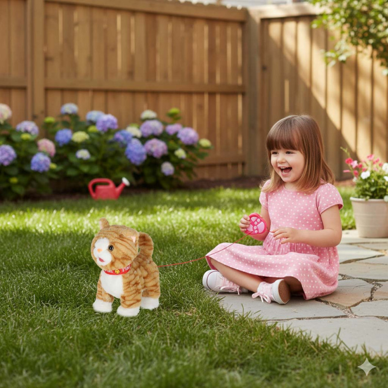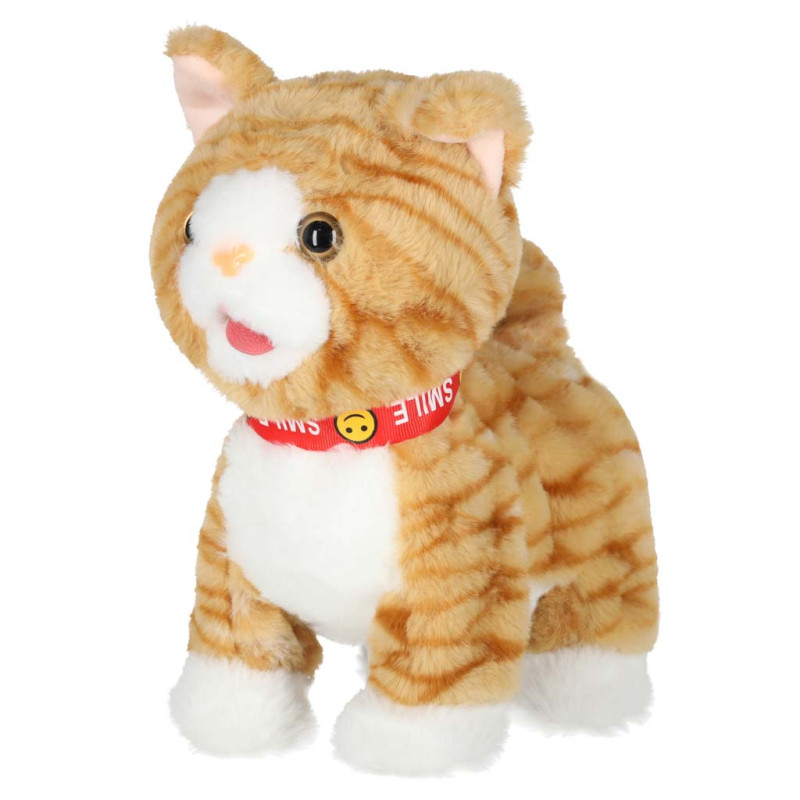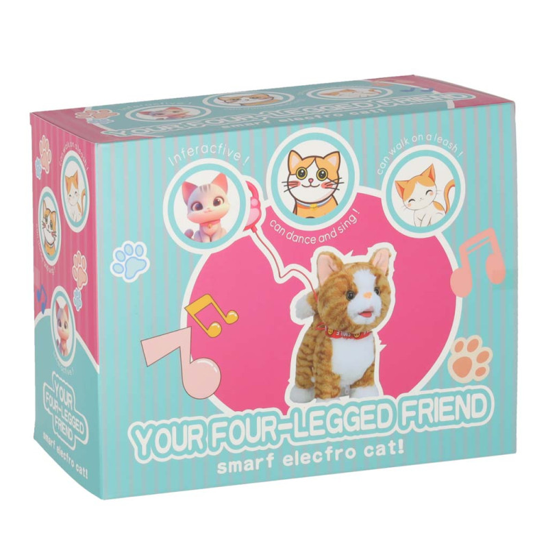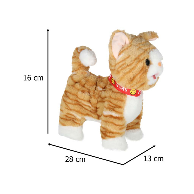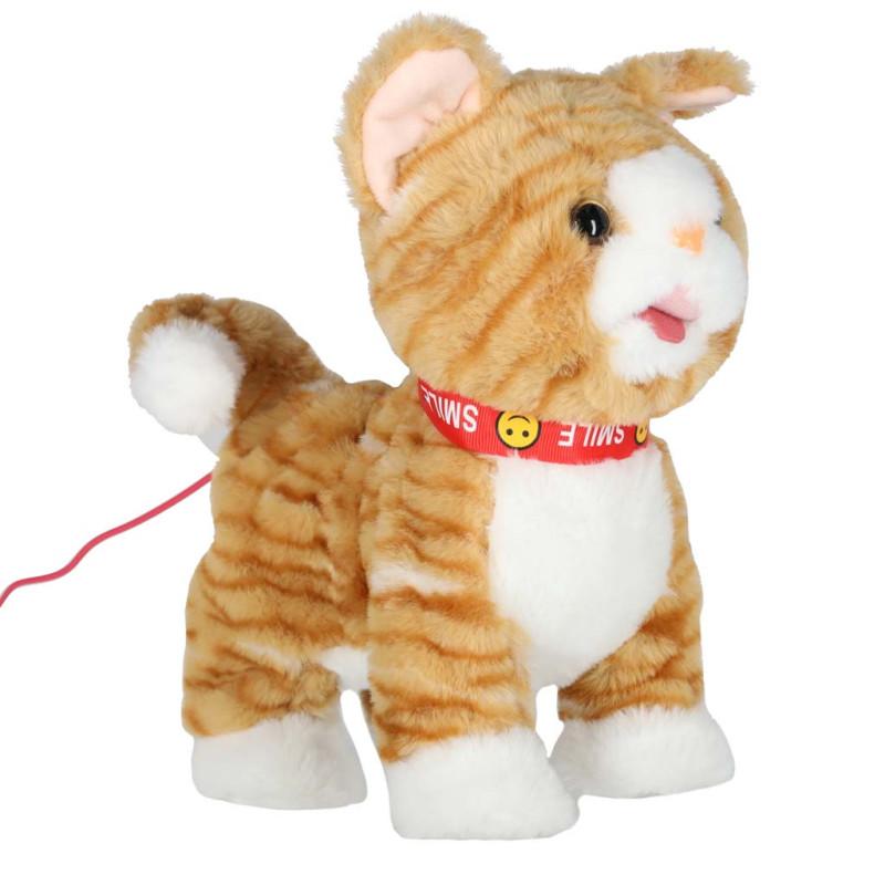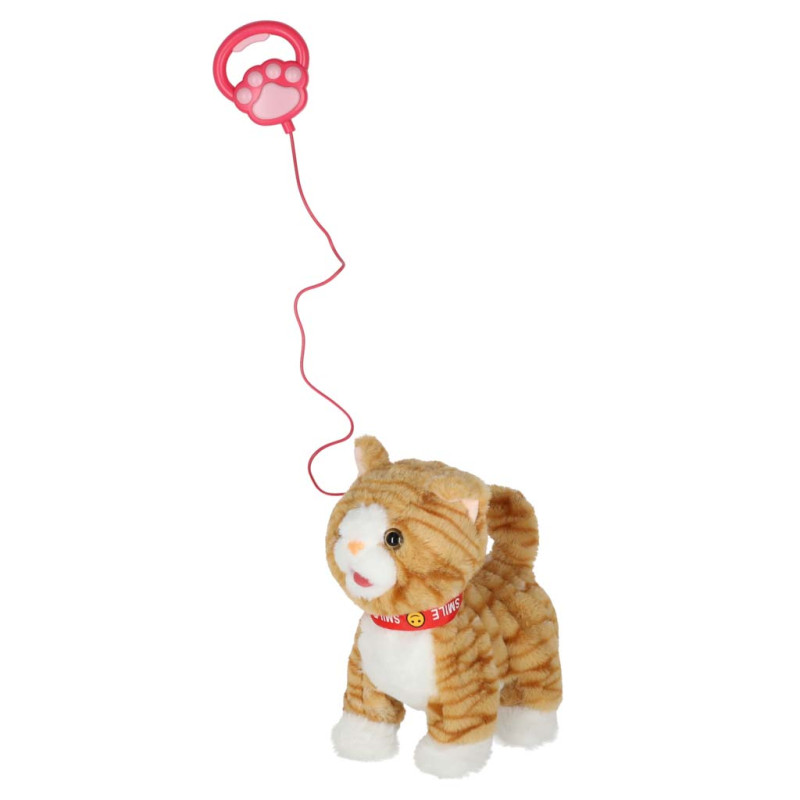 Interaktyvus katinas ant pavadėlio bus jūsų vaiko pliušinis žaidimų draugas. Jis maitinamas AA baterijomis - įdėjus jas, kačiukas bus pasiruošęs pasivaikščioti! Ant pavadėlio esantis jungiklis privers kačiuką judėti pirmyn pagal linksmos dainelės ritmą. Katiną taip pat galima glostyti - gyvūnas atsakys miauksėjimu ir trynimu.