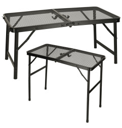 Šis žygių stalas, kurio aliuminio konstrukcija yra lengva iratspari rūdims, o geležinis tinklinis viršus suteikia tvirtumo ir pralaidumo orui. Šis modelis puikiai tinka lauko sąlygomis - aliumininis turistinis stalas išlieka patvarus net intensyviai naudojant ir esant atšiaurioms oro sąlygoms. Lengvas valymas ir greitas džiūvimas - papildomi privalumai, dėl kurių šis stalas yra puikus pasirinkimas paplūdimiui,sklypui ar festivaliui.